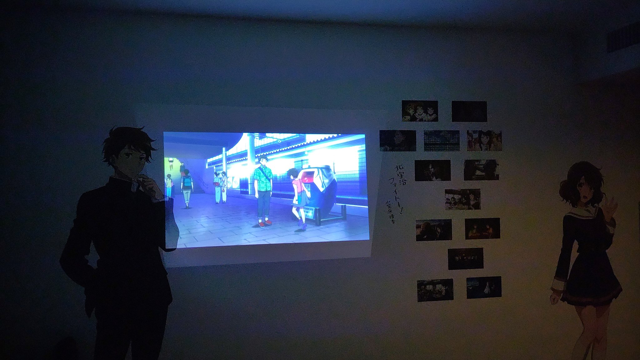 プロジェクターとユーフォシリーズ(TV版BD-BOX1期・2期、劇場版北宇治吹部へようこそ、劇場版届けたいメロディー、劇場版誓いのフィナーレ、リズと青い鳥)の円盤各種が備え付けられており、大画面で作品を楽しむことができます。窓の外に駅ビルを眺めながら「えきびるコンサート」なんてことも…