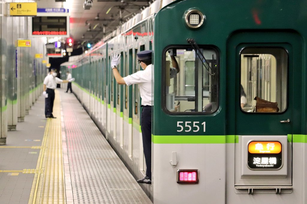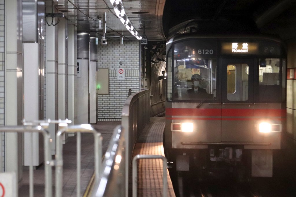 御器所駅の中村区役所寄りから狙います。立ち位置はホームドアの端部付近で、ホーム未使用部分にある照明を利用します。正直言って暗いですが、多彩な行先の列車を撮れるのが魅力です。